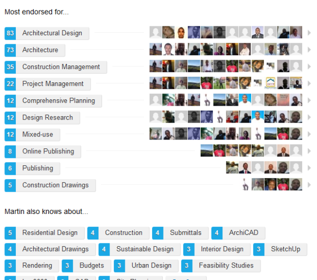 My Linkedin Endorsements Martin Tairo Maseghe January 30, 2014 0 Comment Share this:FacebookLinkedInRedditPocketEmailTwitterPrintPinterestTumblr