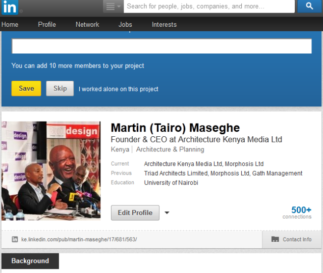My Linkedin Profile Martin Tairo Maseghe January 30, 2014 0 Comment Share this:FacebookLinkedInRedditPocketEmailTwitterPrintPinterestTumblr